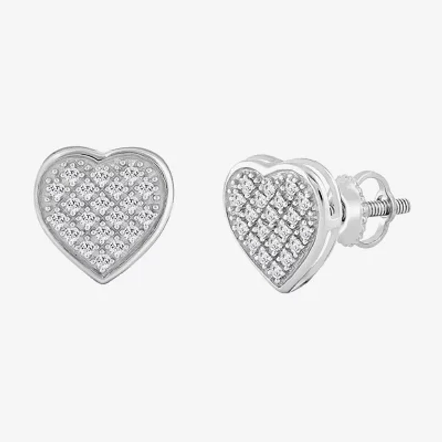 1/10 CT. T.W. Natural White Diamond Sterling Silver 9.3mm Heart Stud Earrings