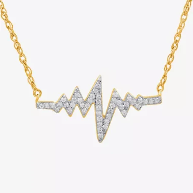 Heartbeat Womens 1/10 CT. T.W. Natural White Diamond Pendant Necklace 14K Gold Over Silver