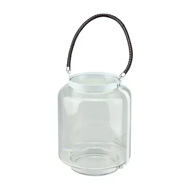 18'' Clear Glass Pillar Candle Lantern with White Metal Frame