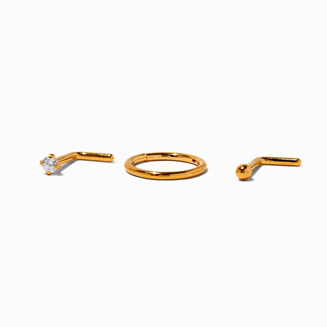 18G 18kt Gold Plated Titanium Cubic Zirconia Mixed Nose Jewelry Set - 3 Pack