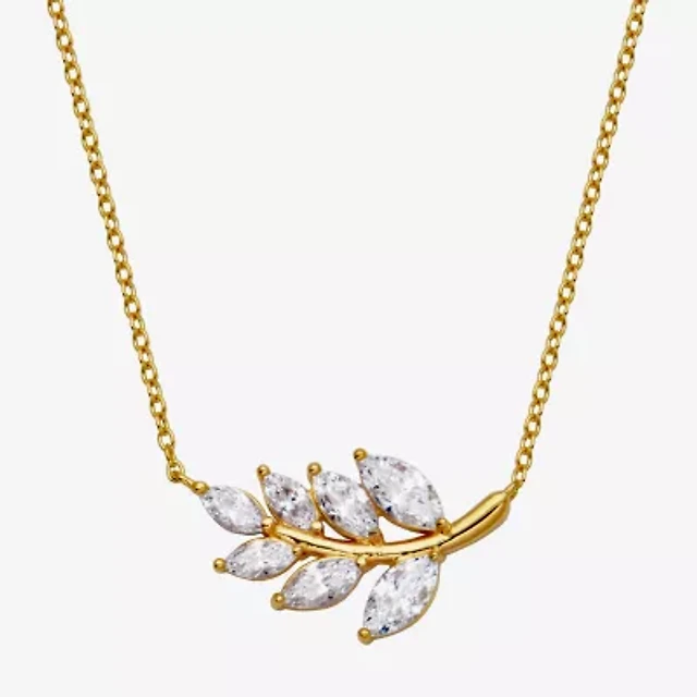 18K Gold Over Sterling Silver Marquise Cubic Zirconia Leaf 18" Necklace