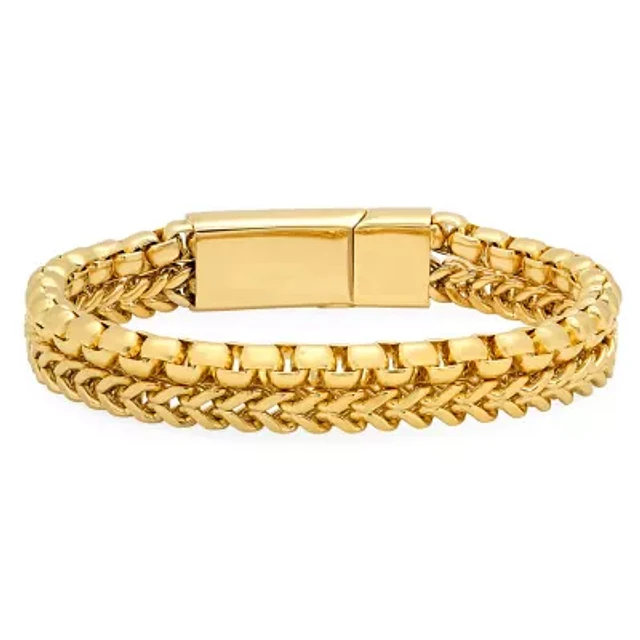 Mens 18K Gold over Stainless Steel Beaded Bracelet