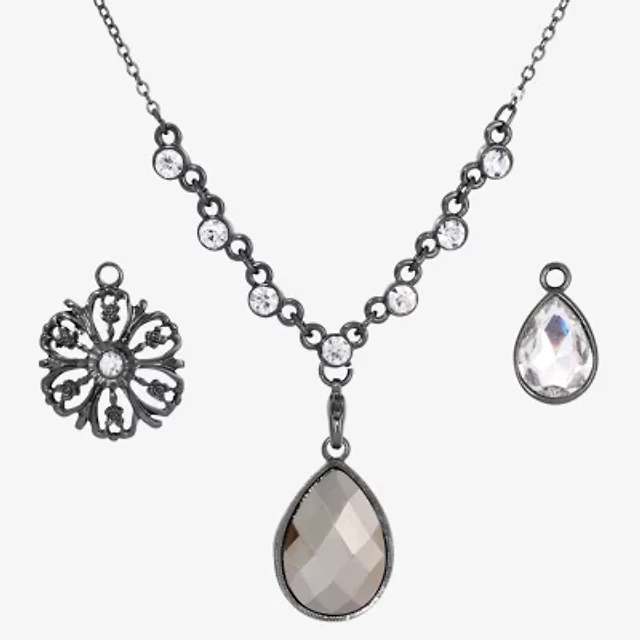 1928 Gold Tone Interchangeable Womens Black Crystal 3-pc. Pendant Necklace Set