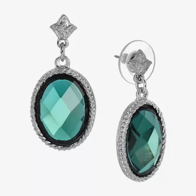 1928 Gold-Tone Womens Green Crystal Oval Drop Earrings