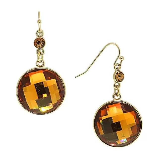 1928 Gold Tone Womens Brown Round Drop Earrings