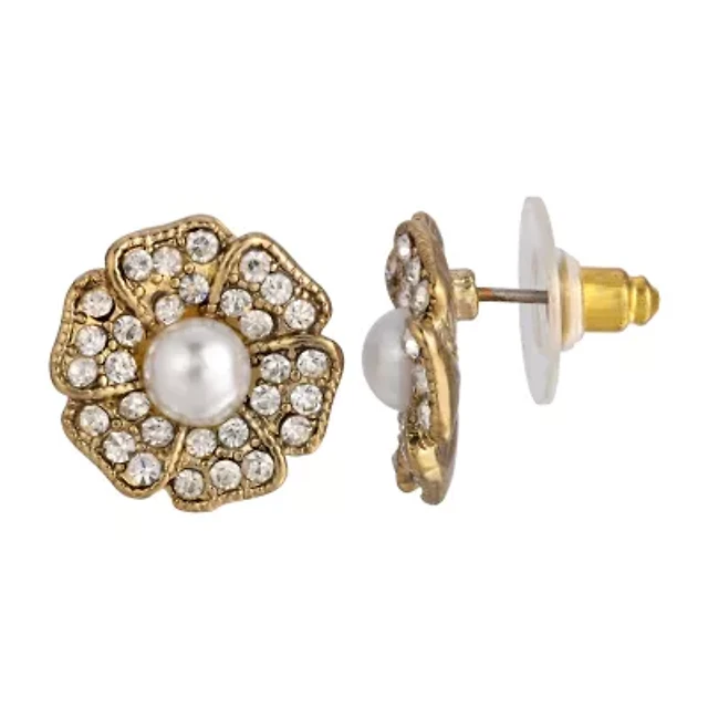 1928 Gold Tone Simulated Pearl 18mm Flower Stud Earrings