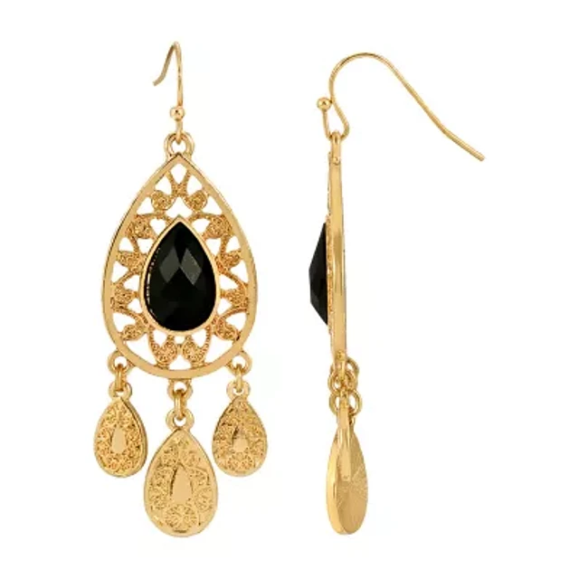 1928 Gold Tone Womens Black Crystal Drop Earrings