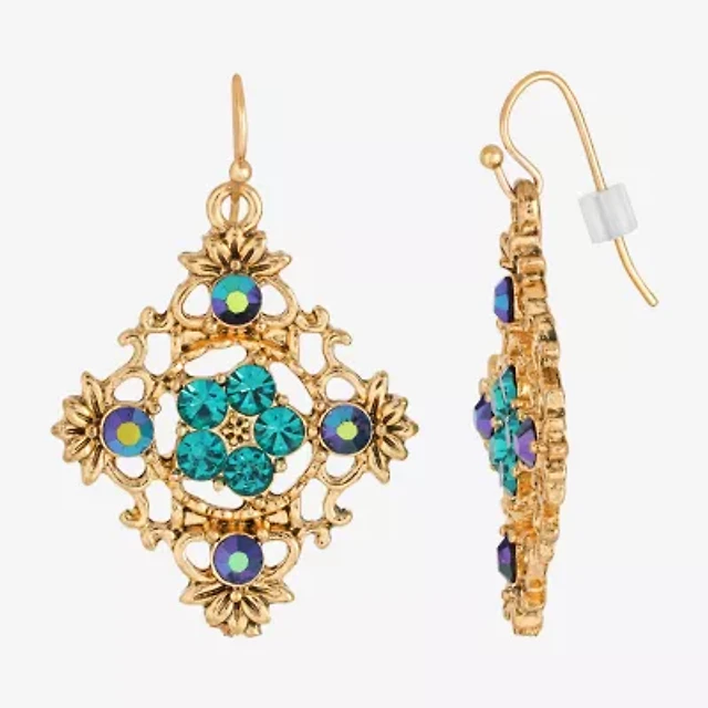 1928 Gold-Tone Womens Blue Crystal Drop Earrings