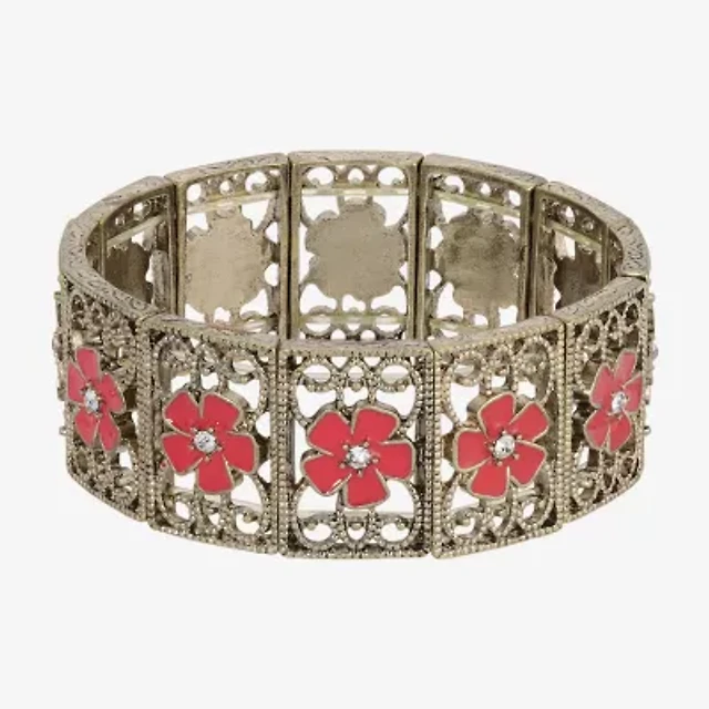 1928 Two-Tone Womens Crystal Flower Stretch Bracelet