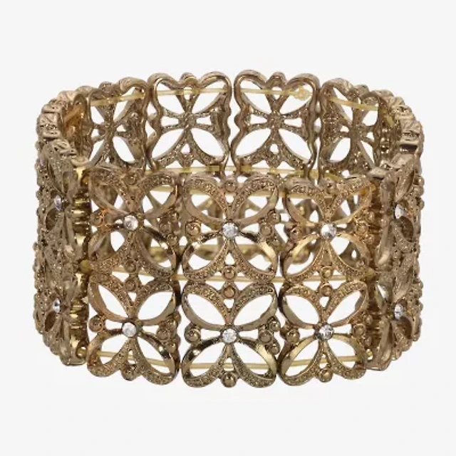 1928 Gold Tone Womens Crystal Stretch Bracelet