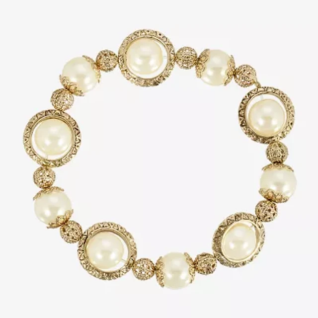 1928 Gold Tone Womens Simulated Pearl Stretch Bracelet
