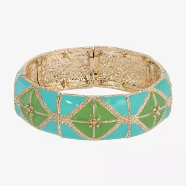 1928 Gold Tone Womens Green Stretch Bracelet