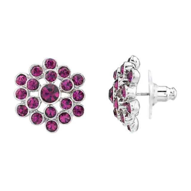 1928 Silver Tone Crystal 16mm Round Stud Earrings