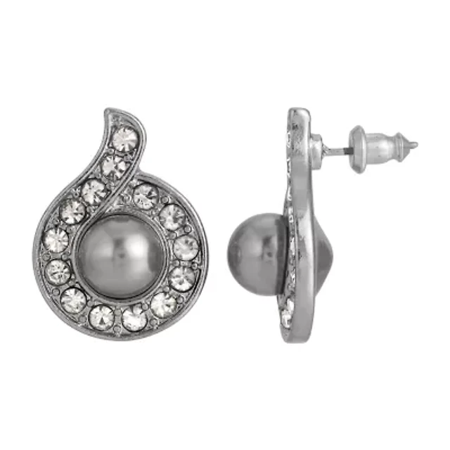 1928 Silver Tone Gray Crystal 1 Inch Stud Earrings