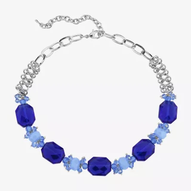 1928 Silver Tone Womens Blue 16 Inch Collar Necklace