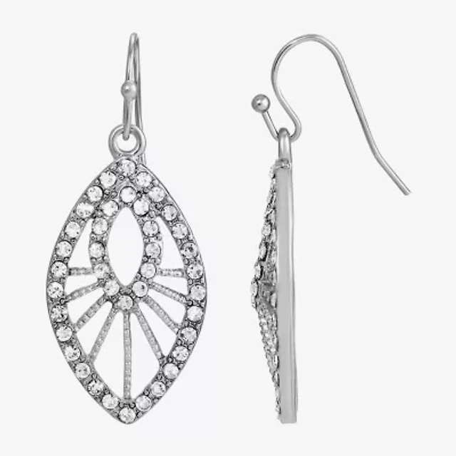1928 Silver Tone Womens Crystal Marquise Drop Earrings
