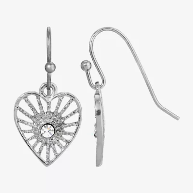 1928 Silver Tone Womens Crystal Heart Drop Earrings