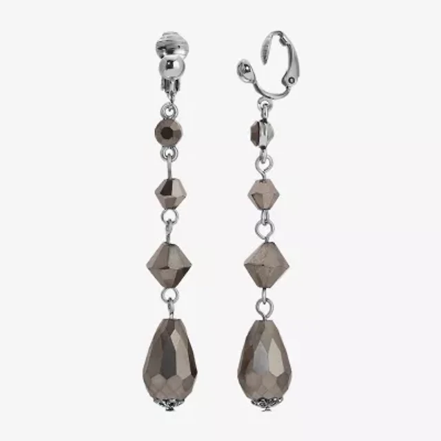 1928 Silver Tone Womens Gray Crystal Clip On Earrings