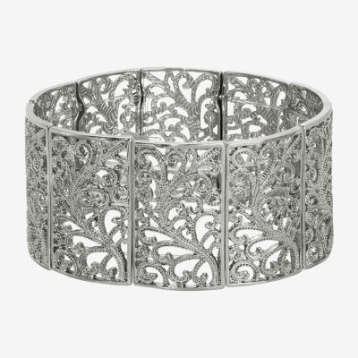 1928 Silver-Tone Womens Crystal Stretch Bracelet