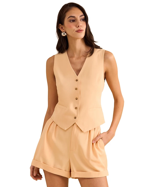 1.state Women's High Rise Roll-Cuff Pleated Shorts