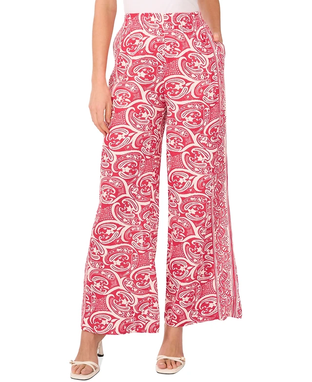 CeCe Women's Printed High-Rise Wide-Leg Pull-On Pants