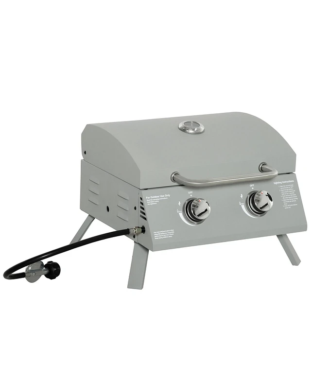 Outsunny Tabletop Propane Gas Grill Bbq w/ 2 Burners Lid Thermometer,
