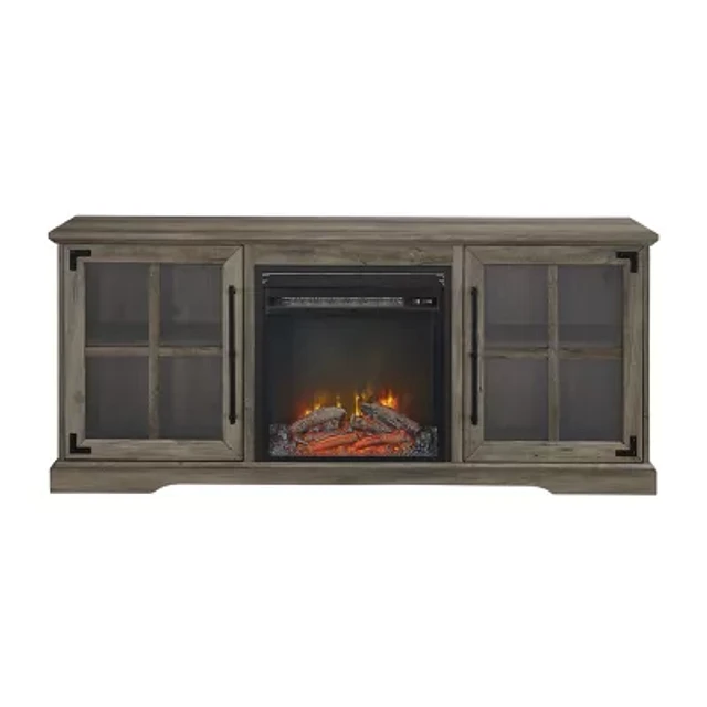 70-Inch TV Console with Glass and Wood 4 Panel Doors