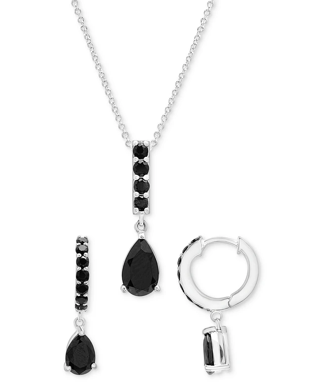 2-Pc. Set Onyx Pendant Necklace & Dangle Hoop Earrings in Sterling Silver