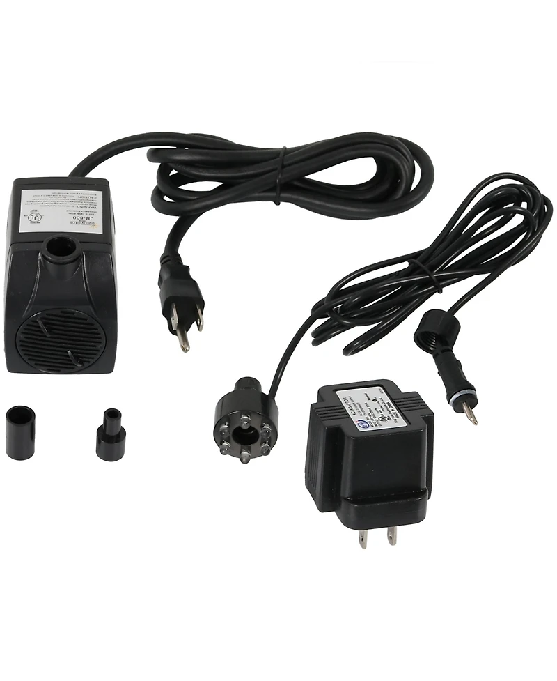 200 Gph Pump for Outdoor Fountains, Aquariums, or Bird Baths - White Led Light and Transformer - 12 Volts