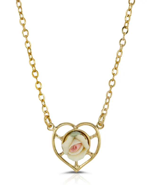 2028 14K Gold-Dipped Porcelain Rose Heart Necklace