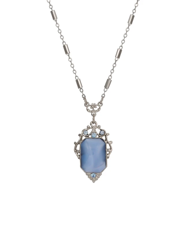 2028 Women's Silver Tone Blue and Crystal Pendant Necklace