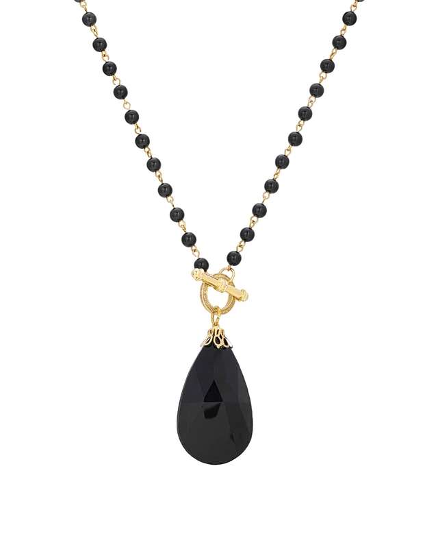 2028 Gold-Tone Onyx STone Necklace