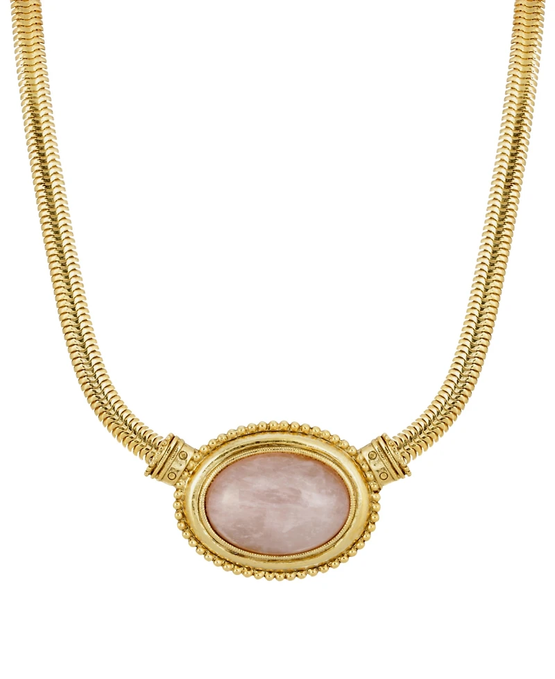 This elegant gold-tone semi-precious oval collar necklace features a sleek snake chain.