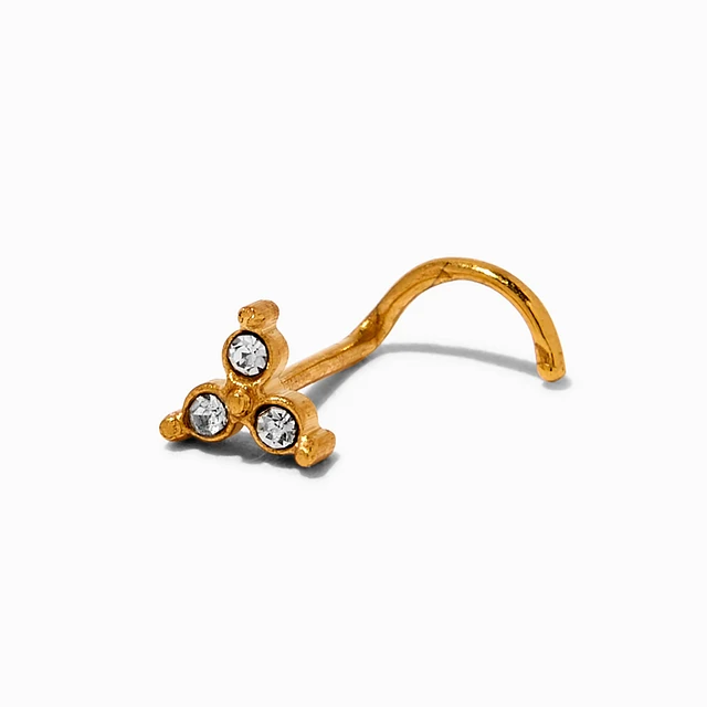20G Gold-tone Stainless Steel Three-Stone Crystal Nose Stud