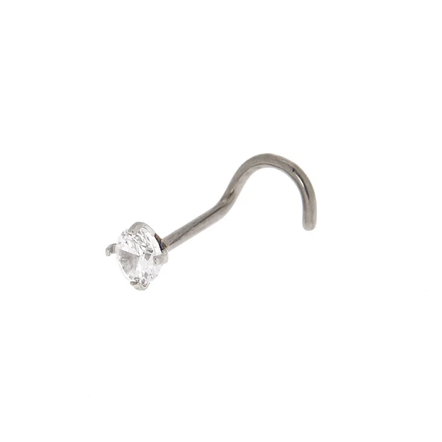 20G Silver-tone Titanium Cubic Zirconia Nose Stud