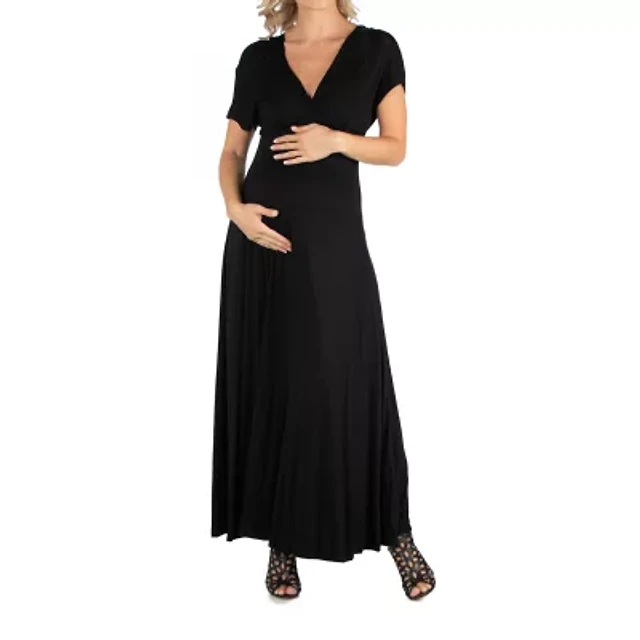 24/7 Comfort Apparel Short Sleeve V Neck Maxi Dress