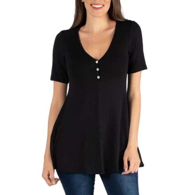 24/7 Comfort Apparel Short Sleeve Tunic Top with Buttons