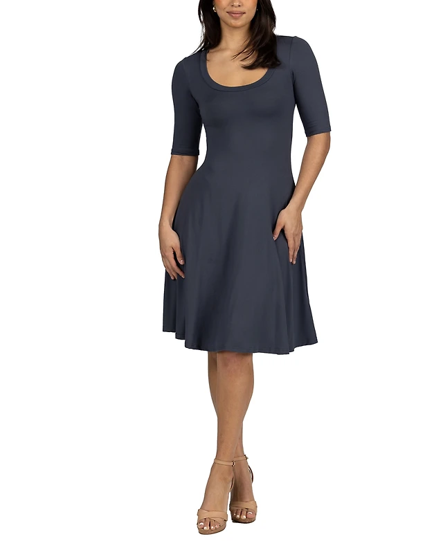 24seven Comfort Apparel Plus Fit and Flare Elbow Sleeves Dress