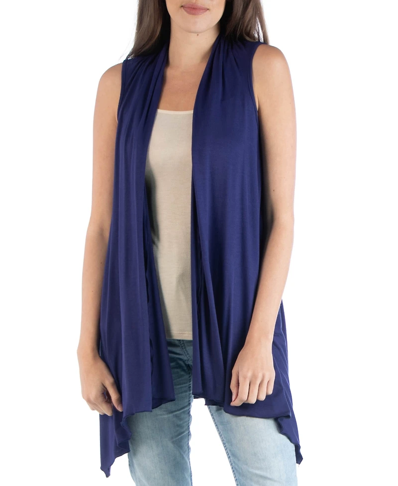 24seven Comfort Apparel Draped Open Front Sleeveless Cardigan Vest
