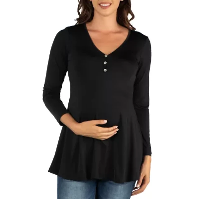 24seven Comfort Apparel Maternity Womens Henley Neck Long Sleeve Tunic Top