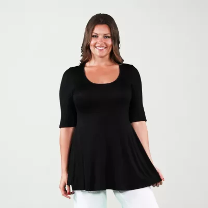 24seven Comfort Apparel Plus Womens Square Neck Elbow Sleeve Tunic Top in Ponce, PR
