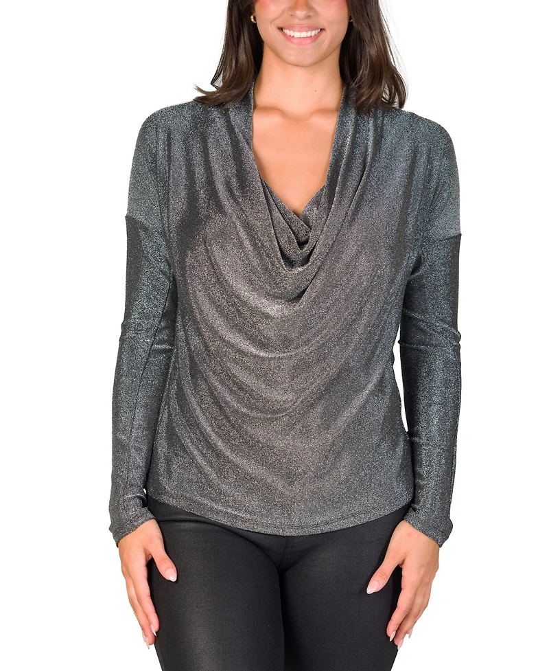 24seven Comfort Apparel Women's Cowl Neck Long Sleeve Shimmery Fabric Top in Ponce, PR