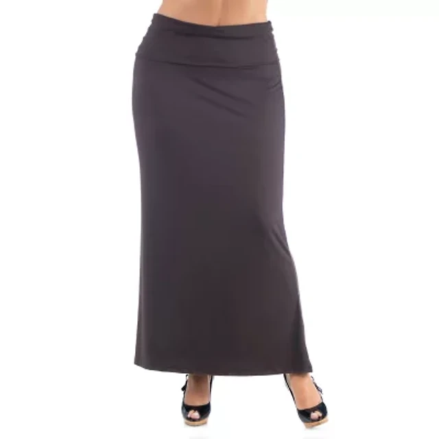 24seven Comfort Apparel Womens Plus Mid Rise Stretch Fabric Maxi Skirt