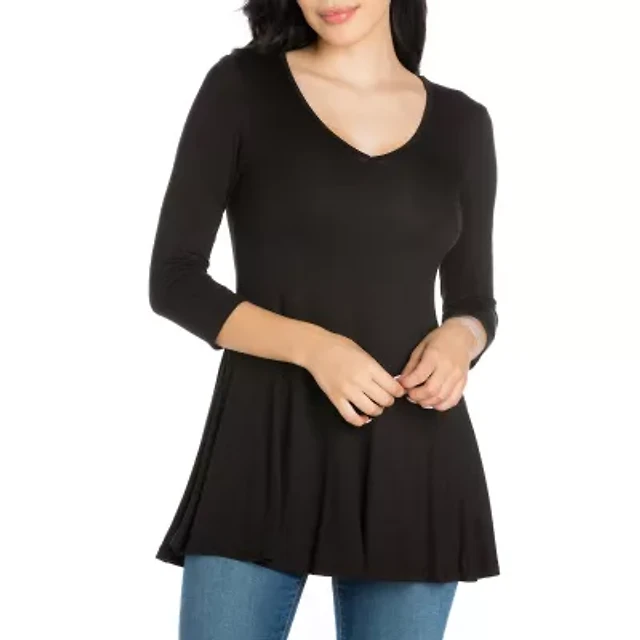 24seven Comfort Apparel Womens V Neck 3/4 Sleeve Tunic Top