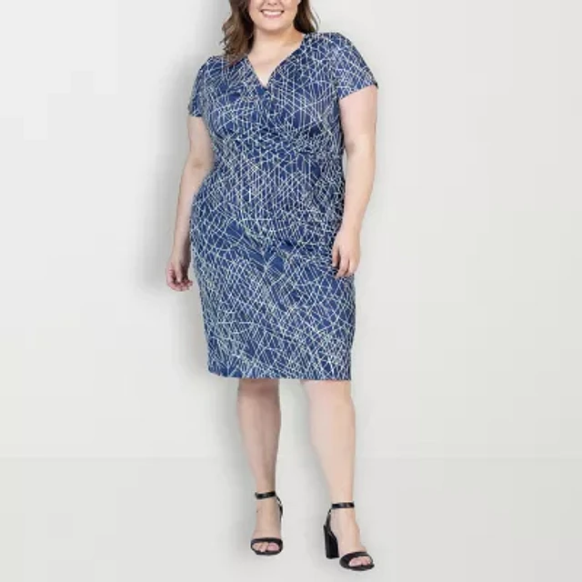 24seven Comfort Apparel Womens Short Sleeve Geometric Wrap Dress Plus