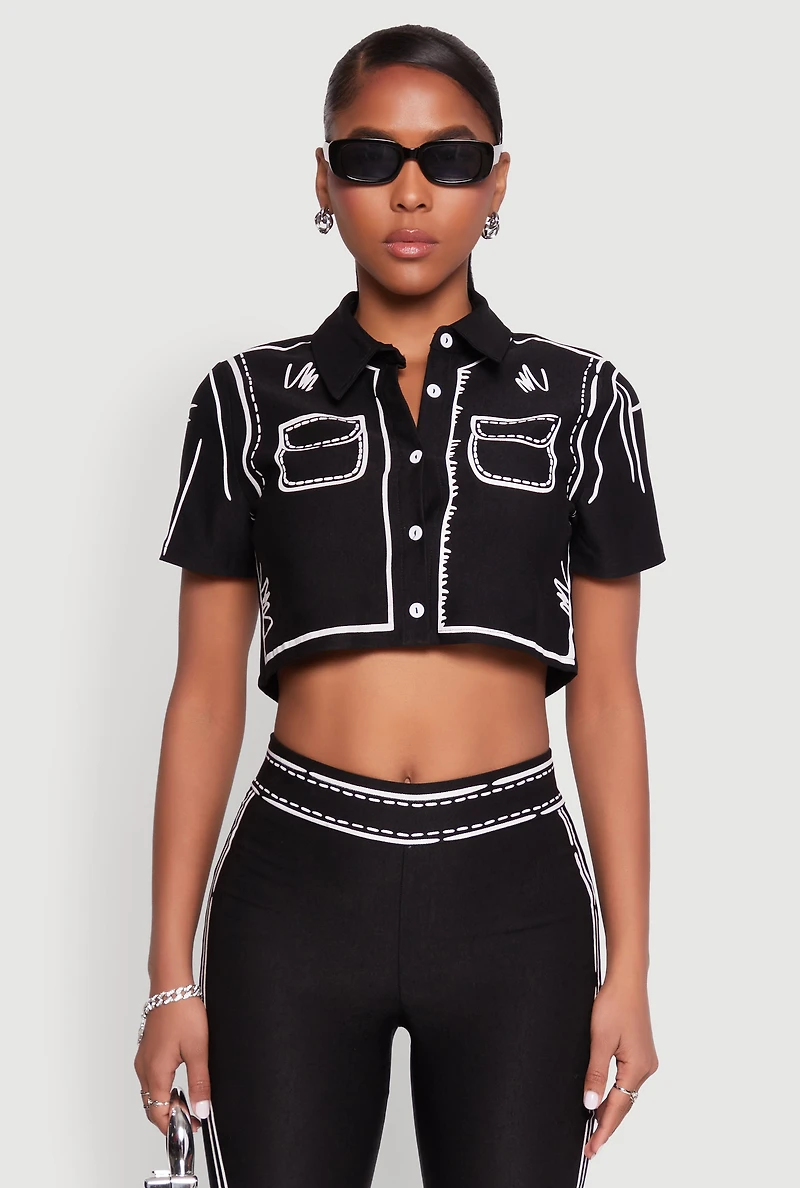 2D Optical Illusion Cropped Shirt