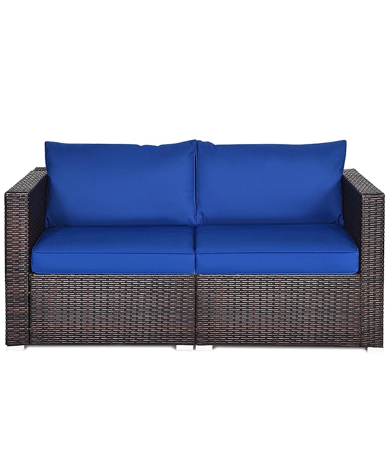 Sturdy steel frame and sturdy rattan add strength and durability to the corner sofa. The ergonomic design of corner sofa can bring you comfort as it highly fit your body radian. With thick cushions, the corner sofa provides you ex cellent comfort. And the cushions have zipper so that you can separate the cover from the padding and to clean it easily. Specifications:Dimension of One Corner Sofa: 29.5''x 29.5''x 25.5''(L x W x H) Weight Capacity of One Sofa: 355 lbsWeight Capacity of Two Sofas: 710 lbsSofa Set Weight: 62 lbsPackage include: Corner Sofa x 2Seat Cushion x 2Back Cushion x 2Instruction x 1
