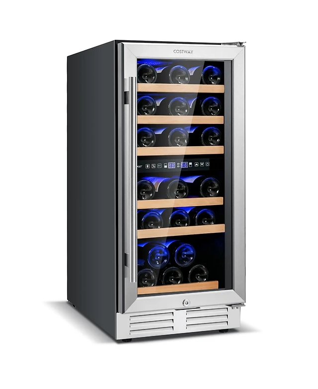 Cowsar 15" Wine Cooler Under Counter Beverage Refrigerator Beer Mini Fridge 28 Bottles Dual Zone Built-in Freestanding Stainless Steel Double-Layer Te