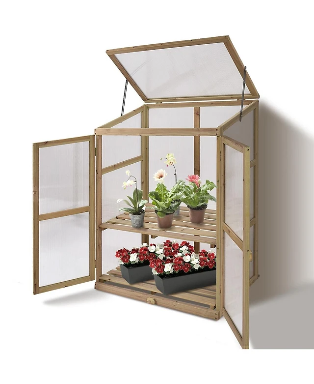 Mondawe Patio Mini Wood Cold Frame, Compact 2 Doors Garden Greenhouse with Wheels