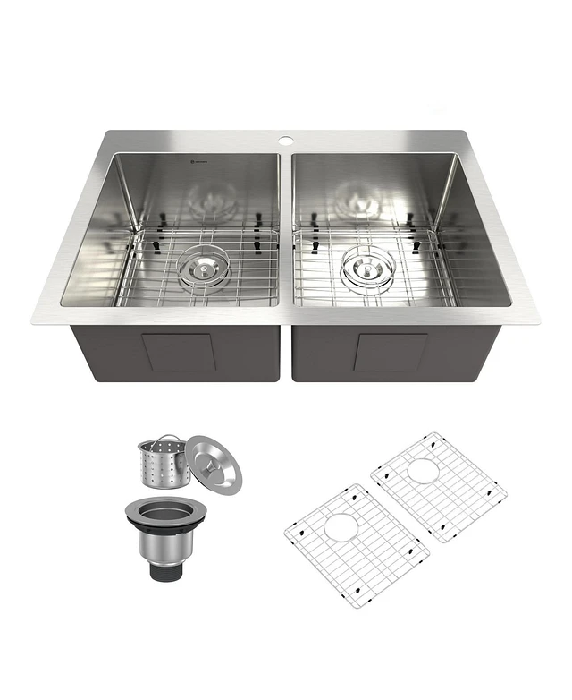 33''x 22'' Stainless Steel Kitchen Sink and Pull-Down Kitchen Faucet Set with Cutting Board, Roller Blind, Drain Basket